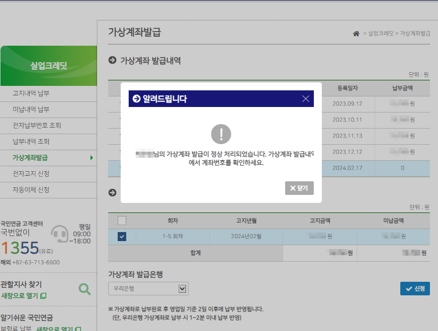 납부 완료 후 국민연금 보험료 입금내역 확인 하면 완료