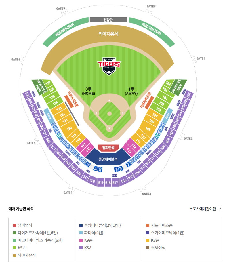 따라서 원정팀인 키움 히어로즈의 경우에는 1루로 예매하셔야 합니다.