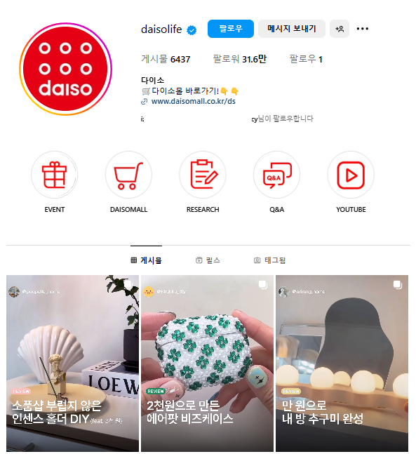 다이소에 나오는 신상이나 추천하는 인기 아이템이 보고 싶다면 다이소 공식 블로그 또는 인스타그램에 볼 수 있습니다.