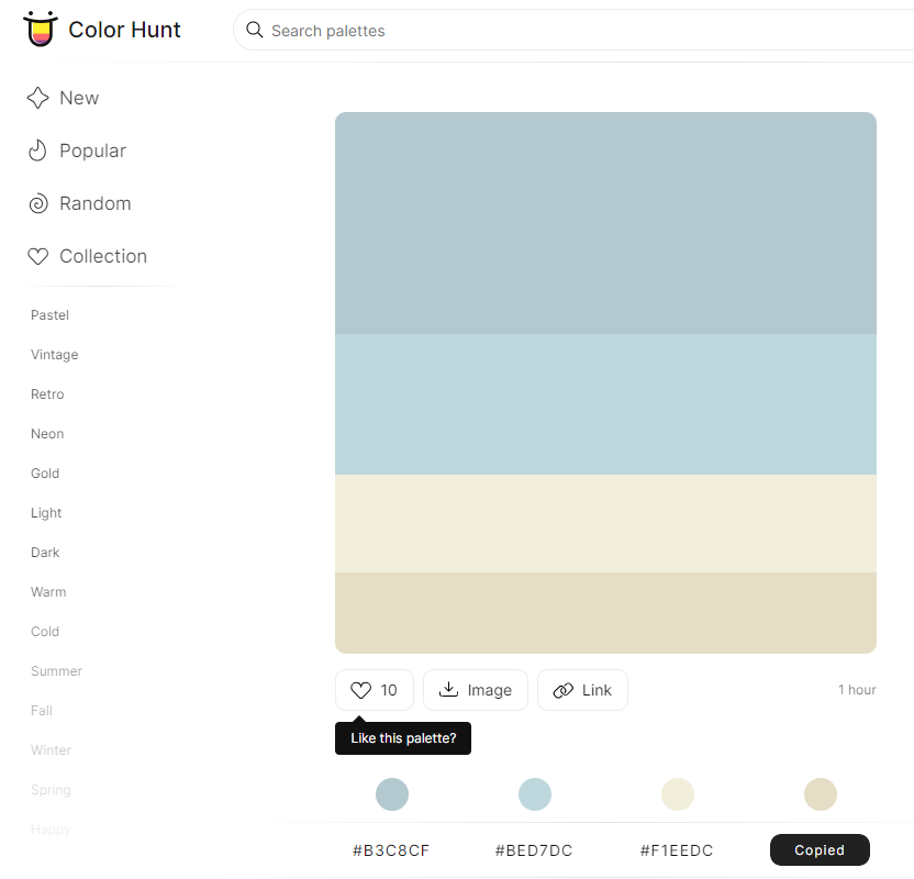 Discover the newest hand-picked color palettes of Color Hunt. Get color inspiration for your design and art projects.