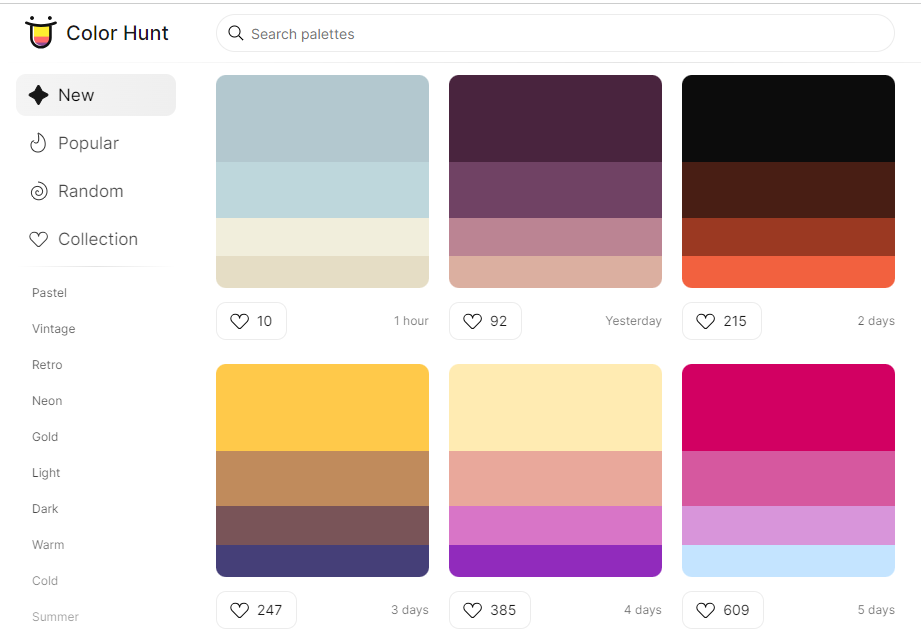 Color Palettes for Designers and Artists - Color Hunt