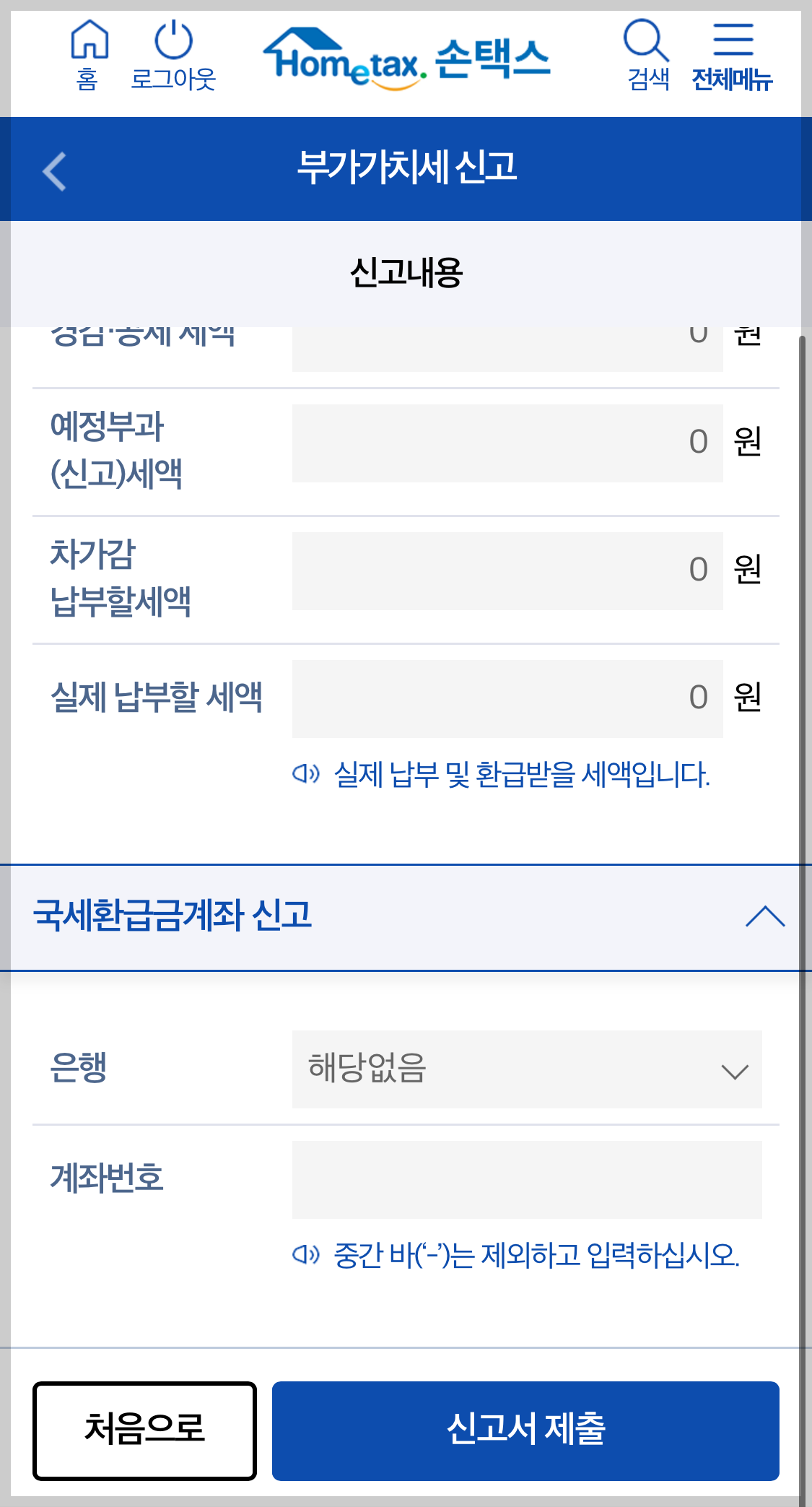 무실적 간이과세자 부가가치세 신고 방법_모바일