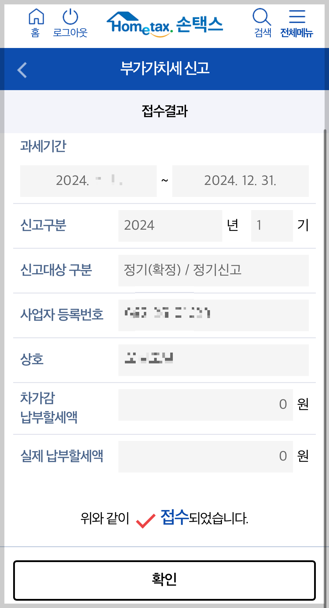 모바일 홈택스 로그인 > 세금신고 > 부가가치세 간편 신고(간이·무실적) 클릭 > 기본정보입력 > 신고서제출