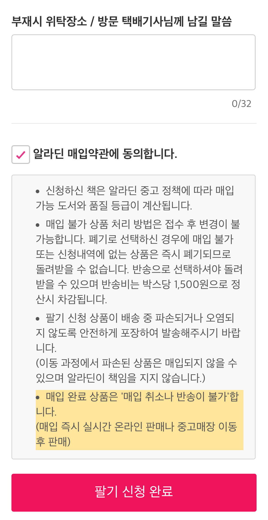 - 알라딘 상품 DB에 등록된 상품만 중고로 판매할 수 있습니다.