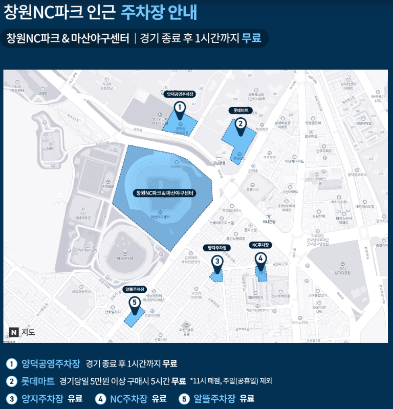 - 양덕 공영주차장 : 경기 종료 후 1시간까지 무료