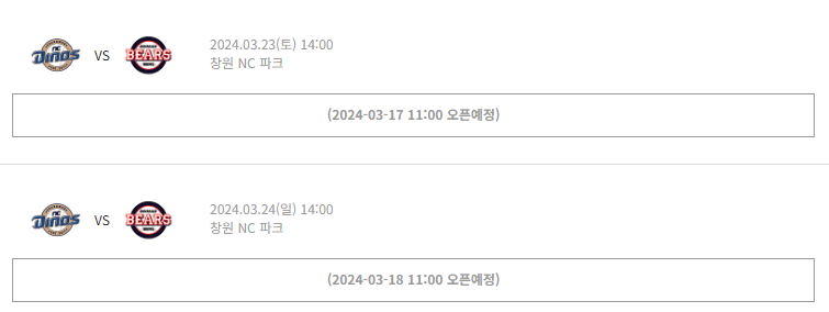 NC 다이노스 Vs 두산베어스 개막전 (창원) 예매