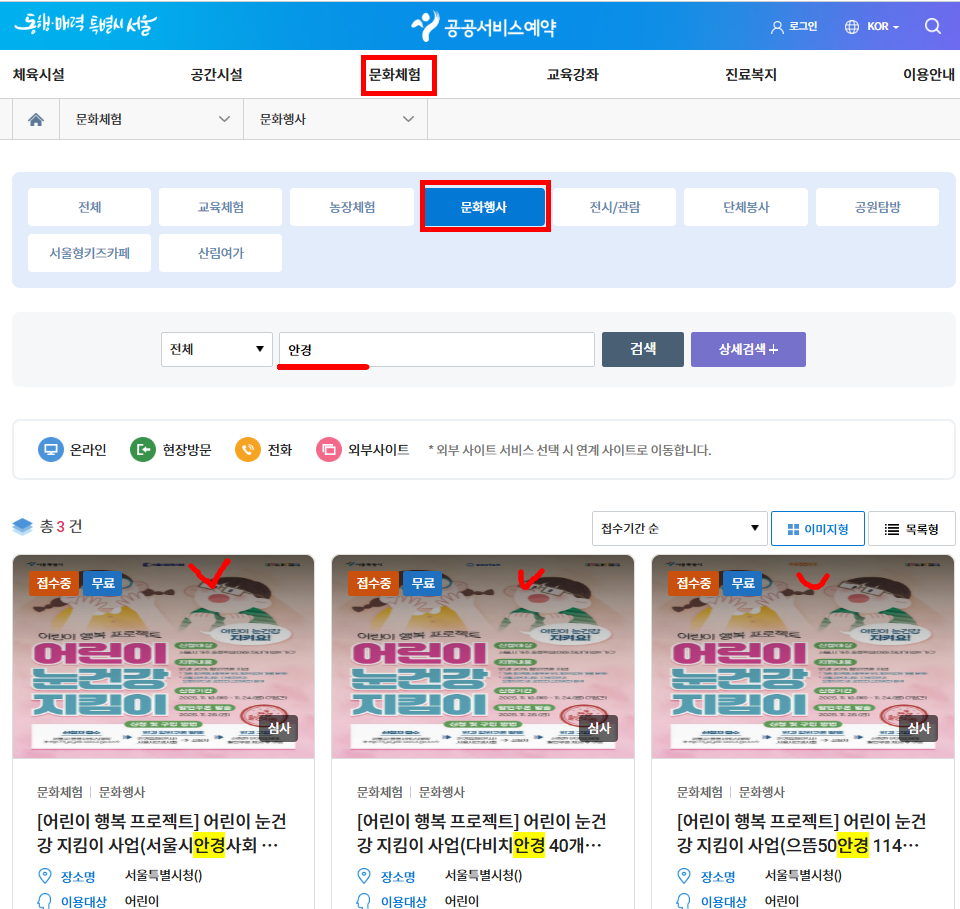 - 서울시 공공서비스예약 접속 → 아이 정보 입력 후 신청