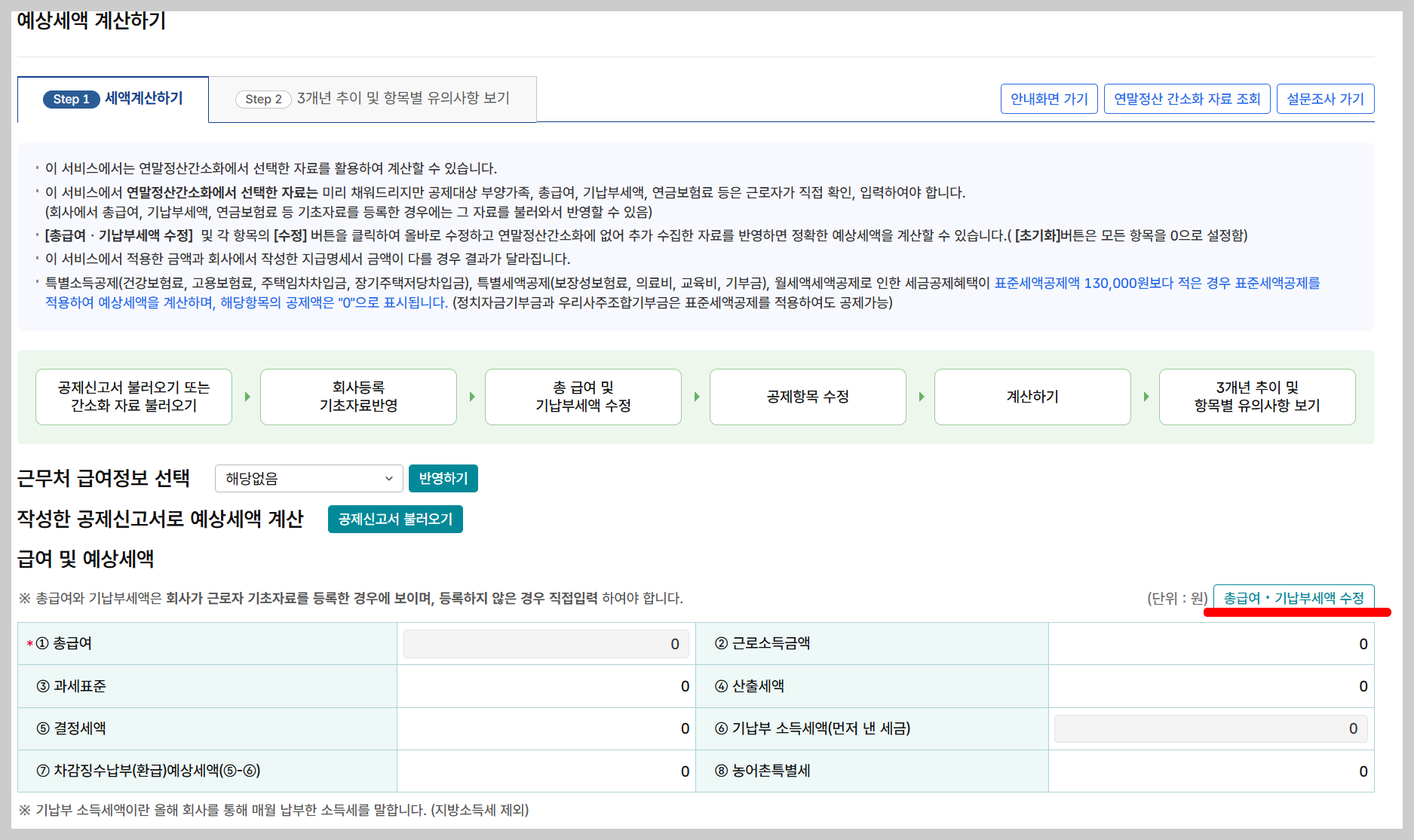- 예상세액 계산버튼을 클릭해서 이동합니다.