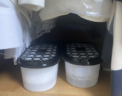 제습제를 집안 곳곳에 배치하면 실내 습기를 줄이는 데 도움이 됩니다. 습기 흡수제는 다양한 형태로 제공되며, 옷장, 신발장, 욕실 등 습기가 많이 차는 곳에 배치하면 좋습니다.