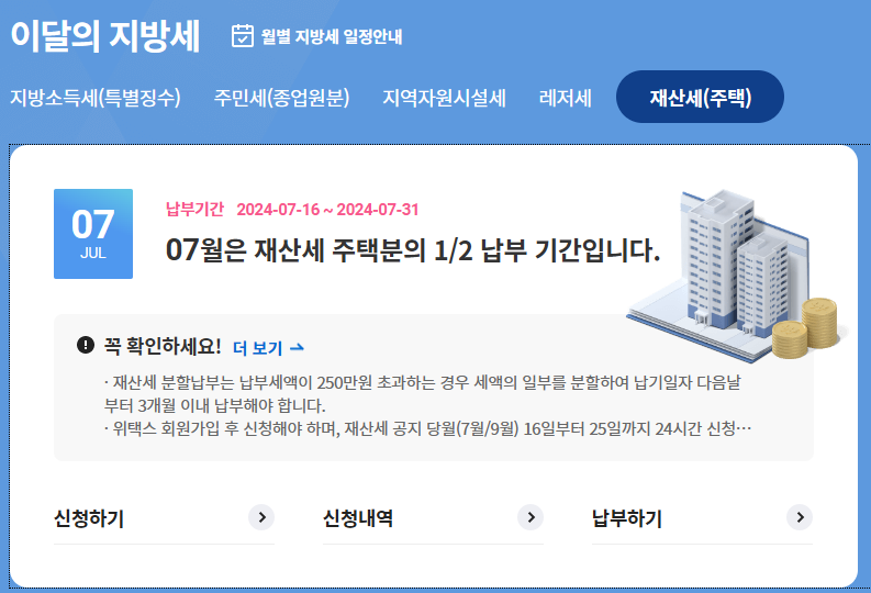 7월은 재산세 납부기간입니다.