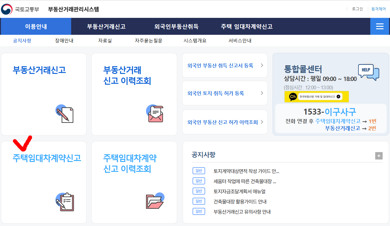 - 부동산거래관리시스템 접속