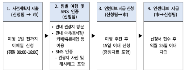 - 인센티브 지급 신청(여행 후 15일 이내 증빙자료를 포함하여 신청)