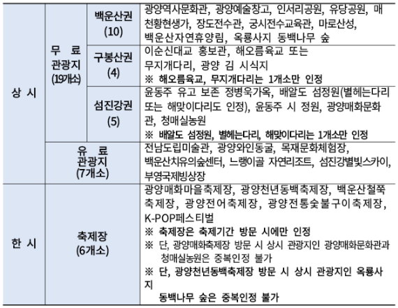 광양 여행지원금 신청 시 주의사항