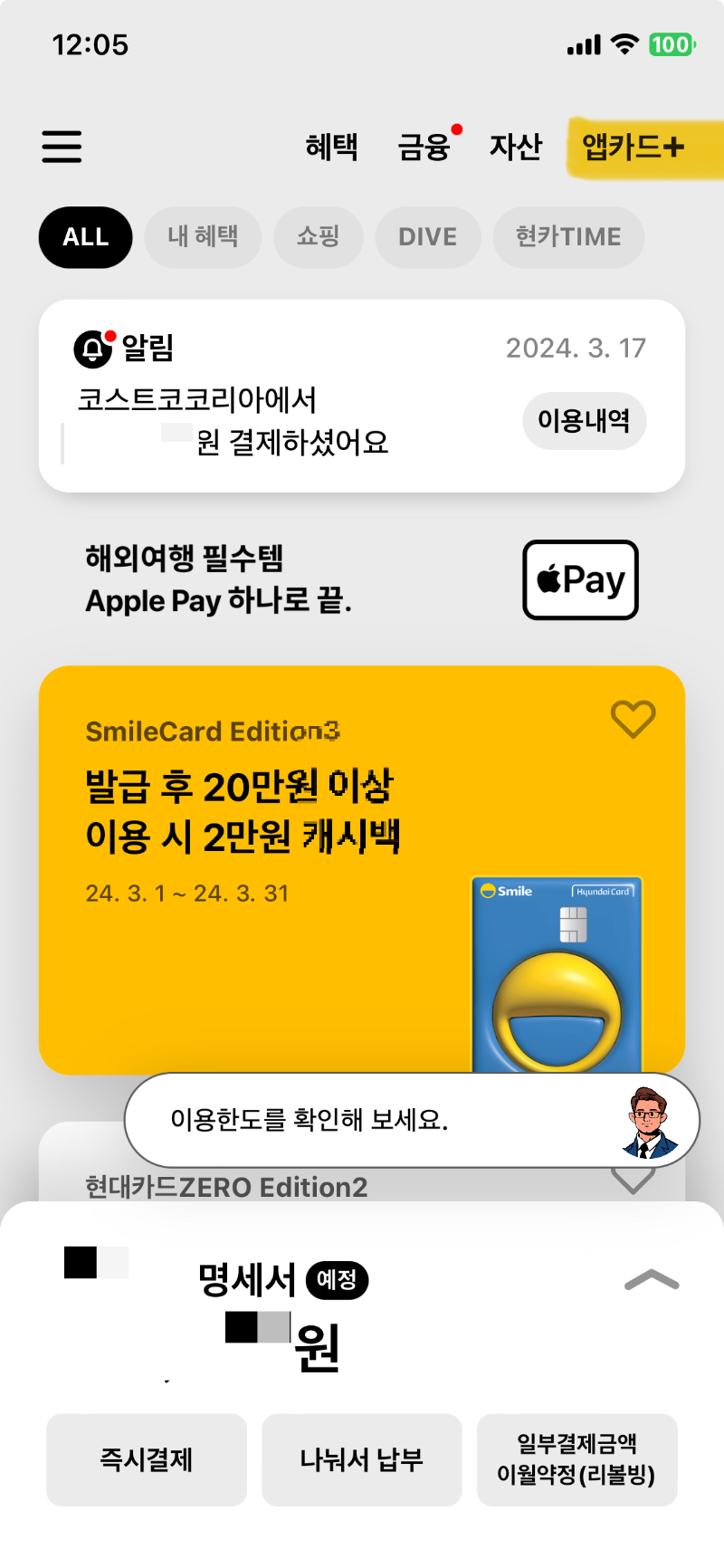 - 현대카드 어플을 실행합니다.