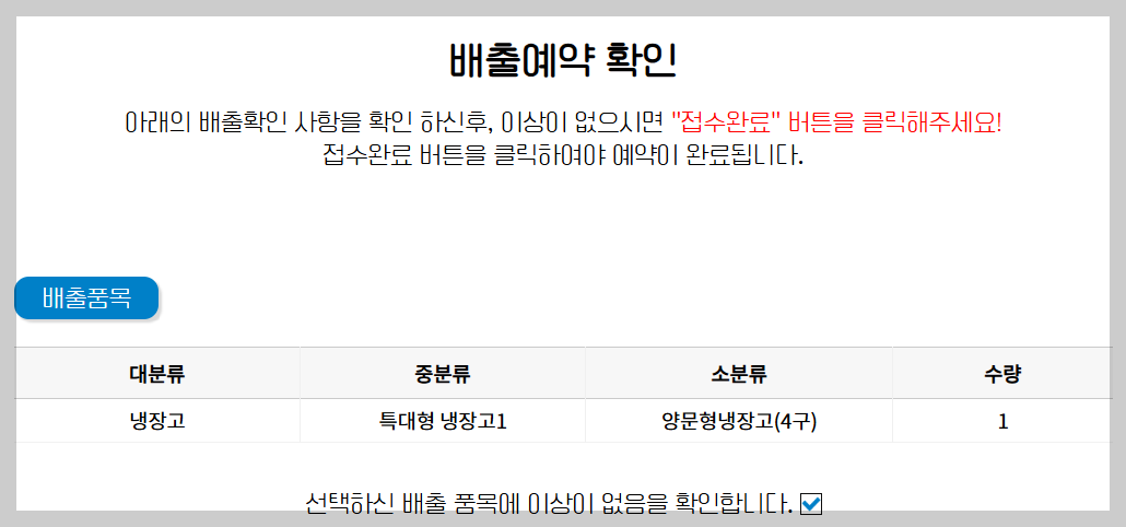4. 접수내역을 확인 후 접수 완료 버튼을 눌러주면 됩니다.
