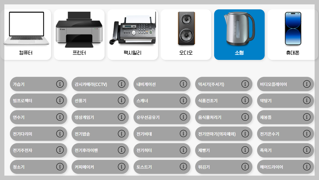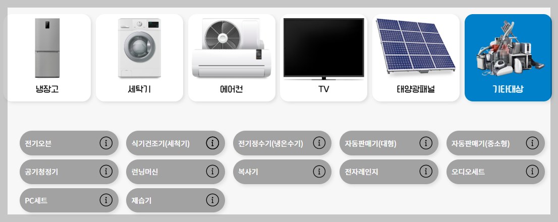 컴퓨터나, 선풍기, 밥솥 등도 신청할 수 있으나 5개 이상수거품목이 있어야만 신청할 수 있습니다.