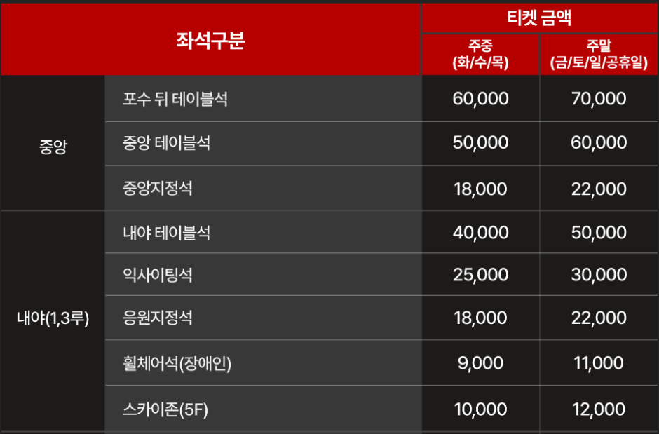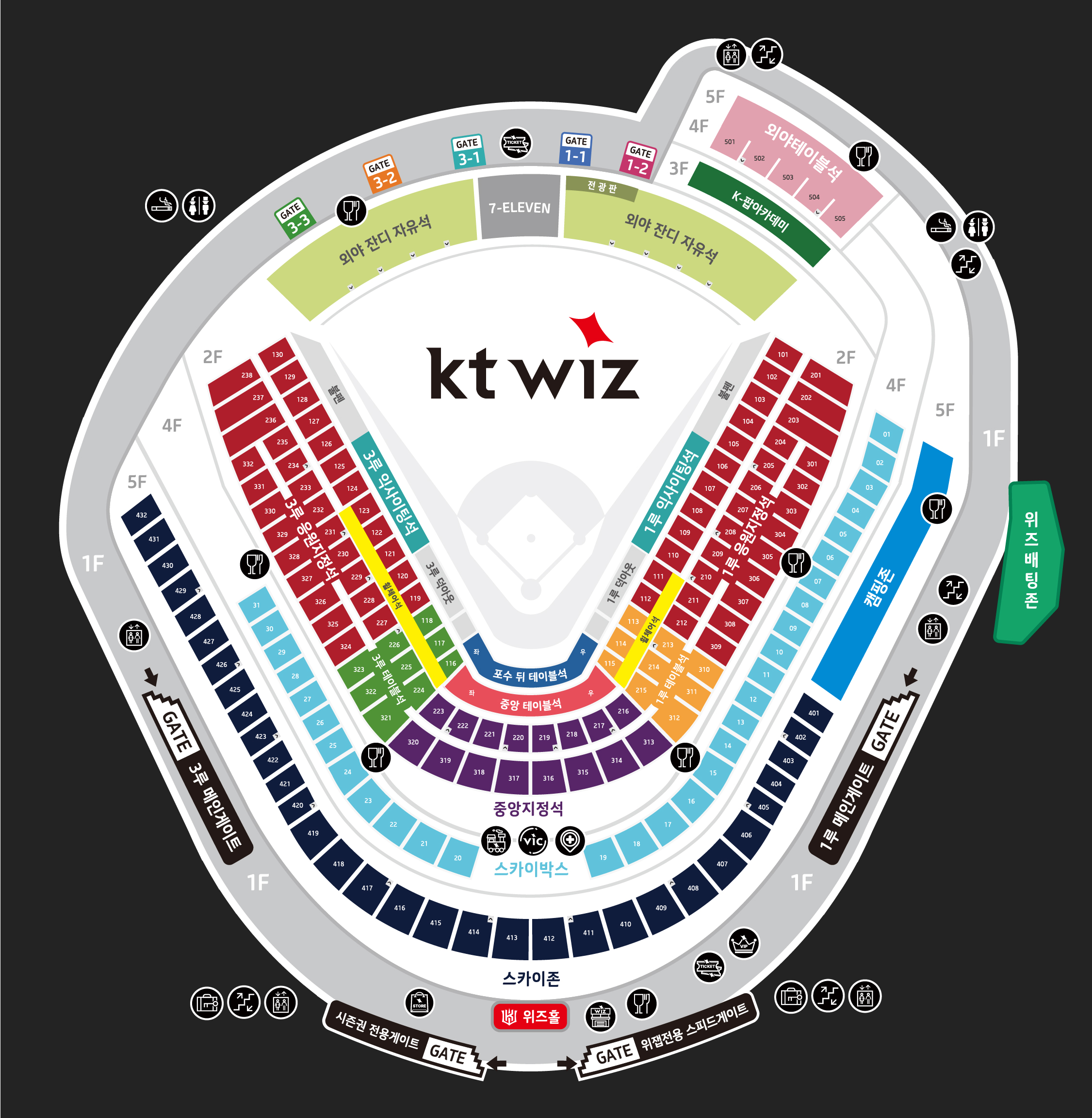 열심히 응원단장과 응원하며 보고 싶다면 응원지정석을 고기를 구워 먹고 싶다면 캠핑존을 선택하면 됩니다.
