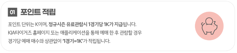 기아타이거즈 공식 앱에서 티켓을 예매하고 경기를 직관하며 1회당 1K 포인트가 적립됩니다.