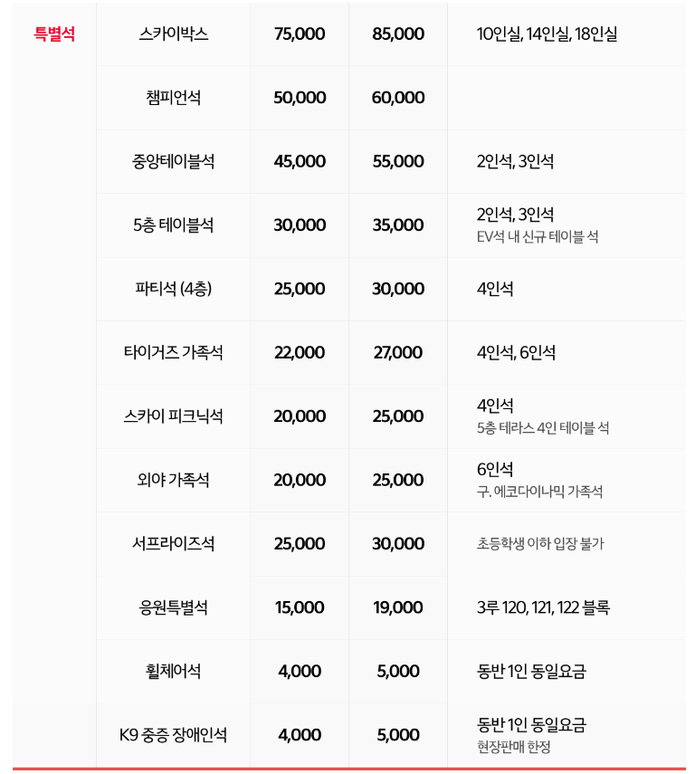 단, 응원특별석 및 테이블석은 앱을 통해서만 예매 가능합니다.
