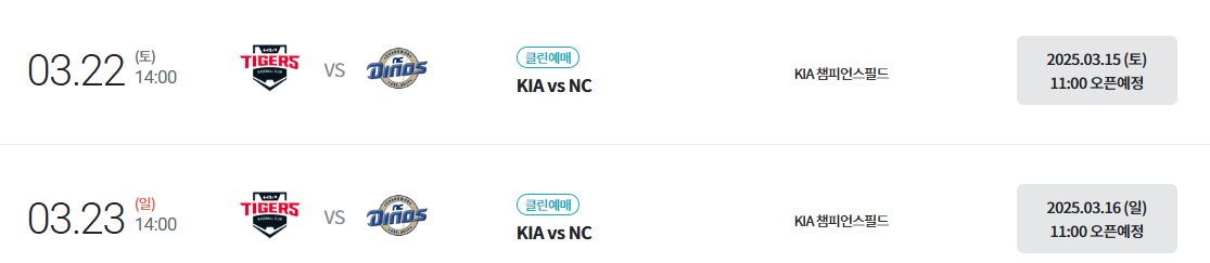NC 다이노스 vs 기아 타이거즈 개막전 예매 방법