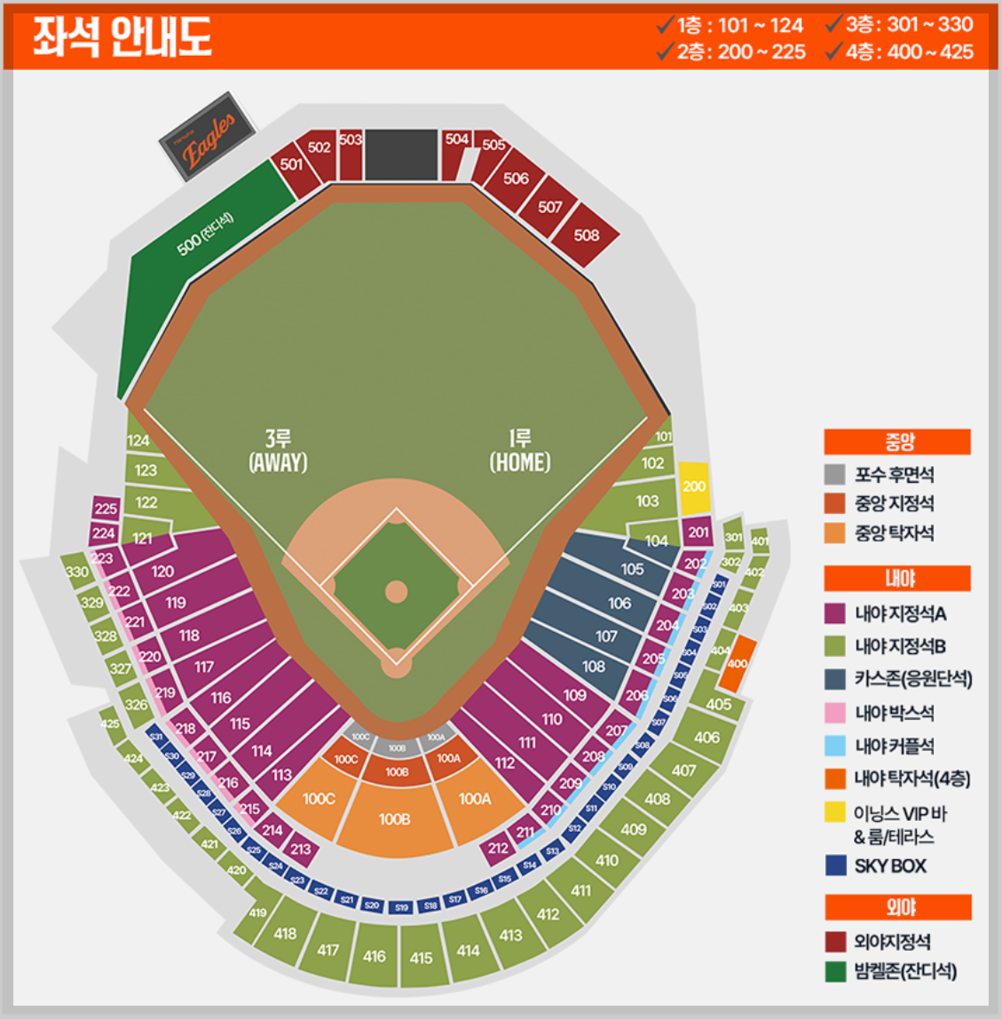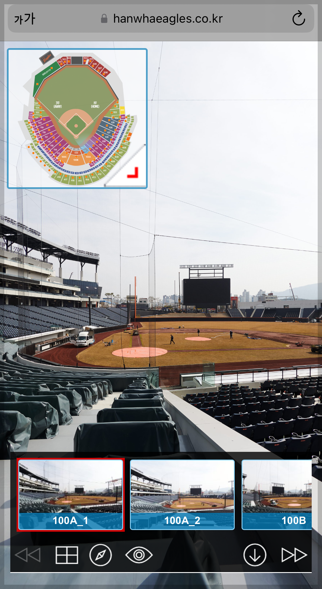 한화이글스 공식 홈페이지와 앱을 통해 360도 좌석뷰를 미리 확인할 수 있는 서비스가 제공되고 있어요.