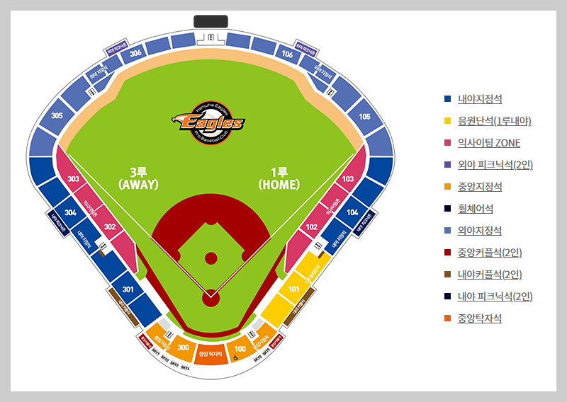 청주야구장 좌석도는 아래 이미지를 참고해 주세요