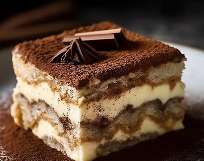 이 과정을 반복해서 2~3겹 정도 층을 쌓아줍니다. - 마지막 층에 마스카포네 크림을 고르게 펴 바르고 체에 코코아 가루를 듬뿍 뿌려줍니다.