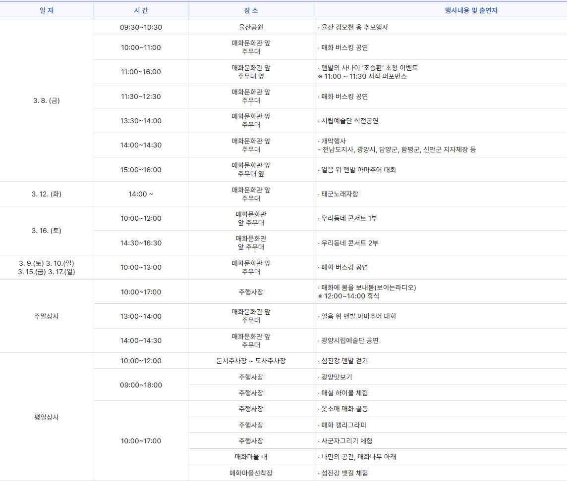 2024년 3월 8일~ 3월 17일까지 광양매화축제가 열립니다.