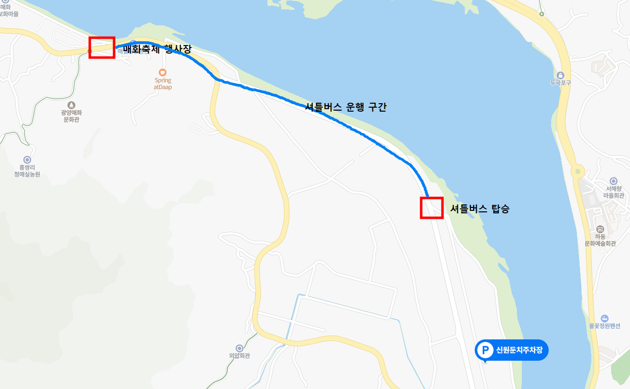 - 운행 노선 : 다압면 둔치 주차장 ↔ 매화축제 행사장(왕복)
