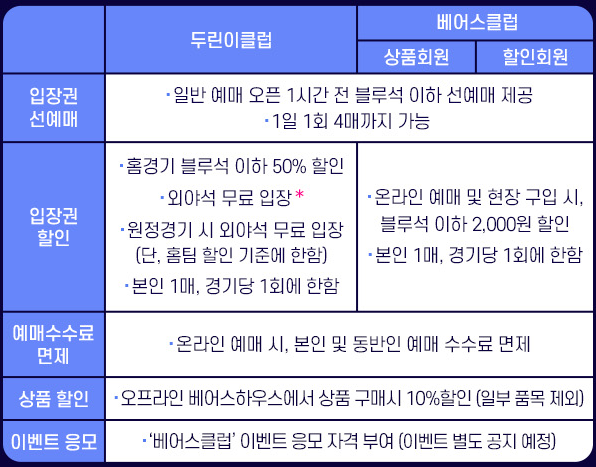 베어스클럽 유료회원 혜택