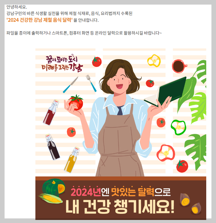 강남구에서 2024년 제철음식 달력을 제작해서 배포했습니다.