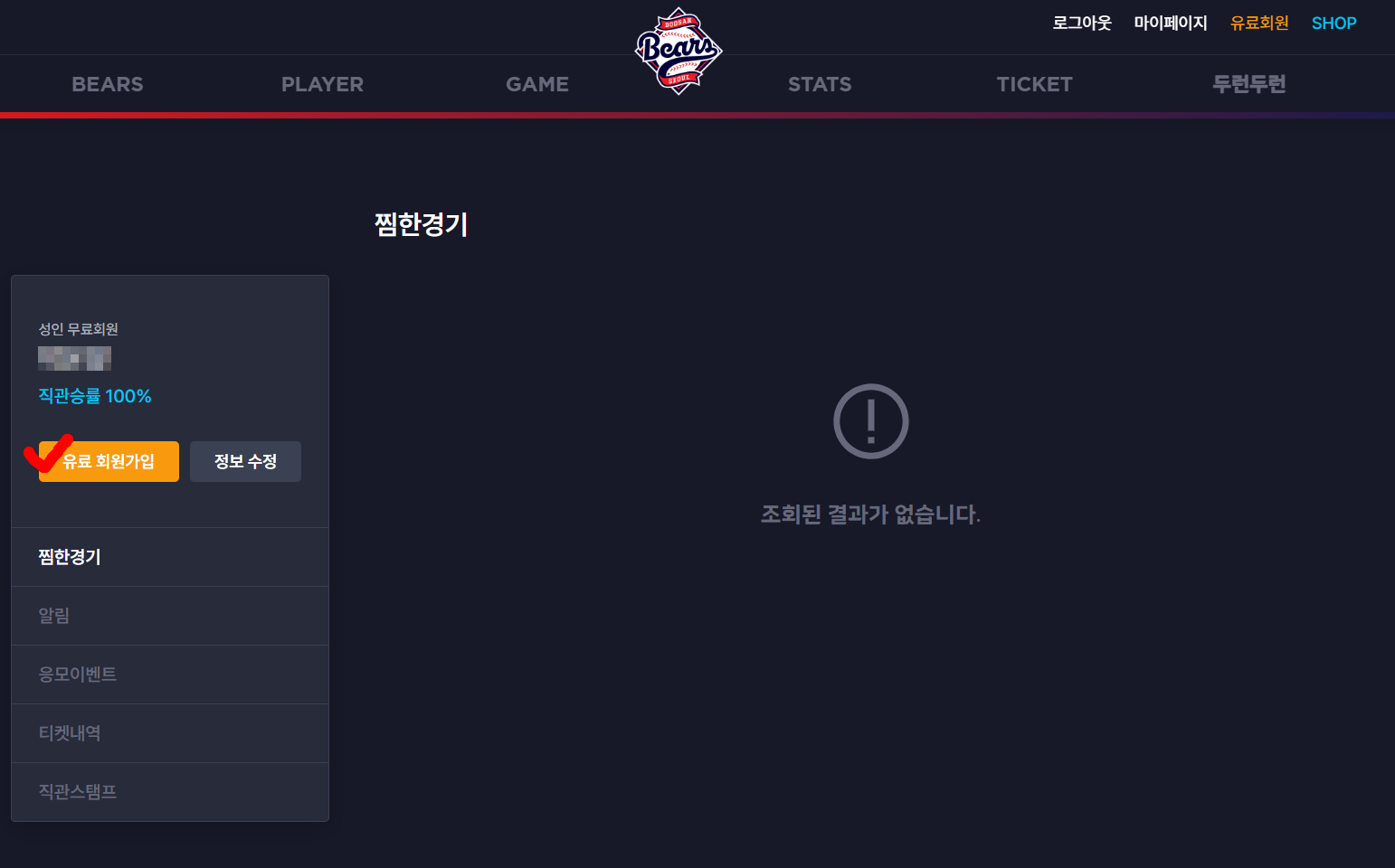 - 두산베어스 공식 홈페이지에 무료 회원가입을 한다.