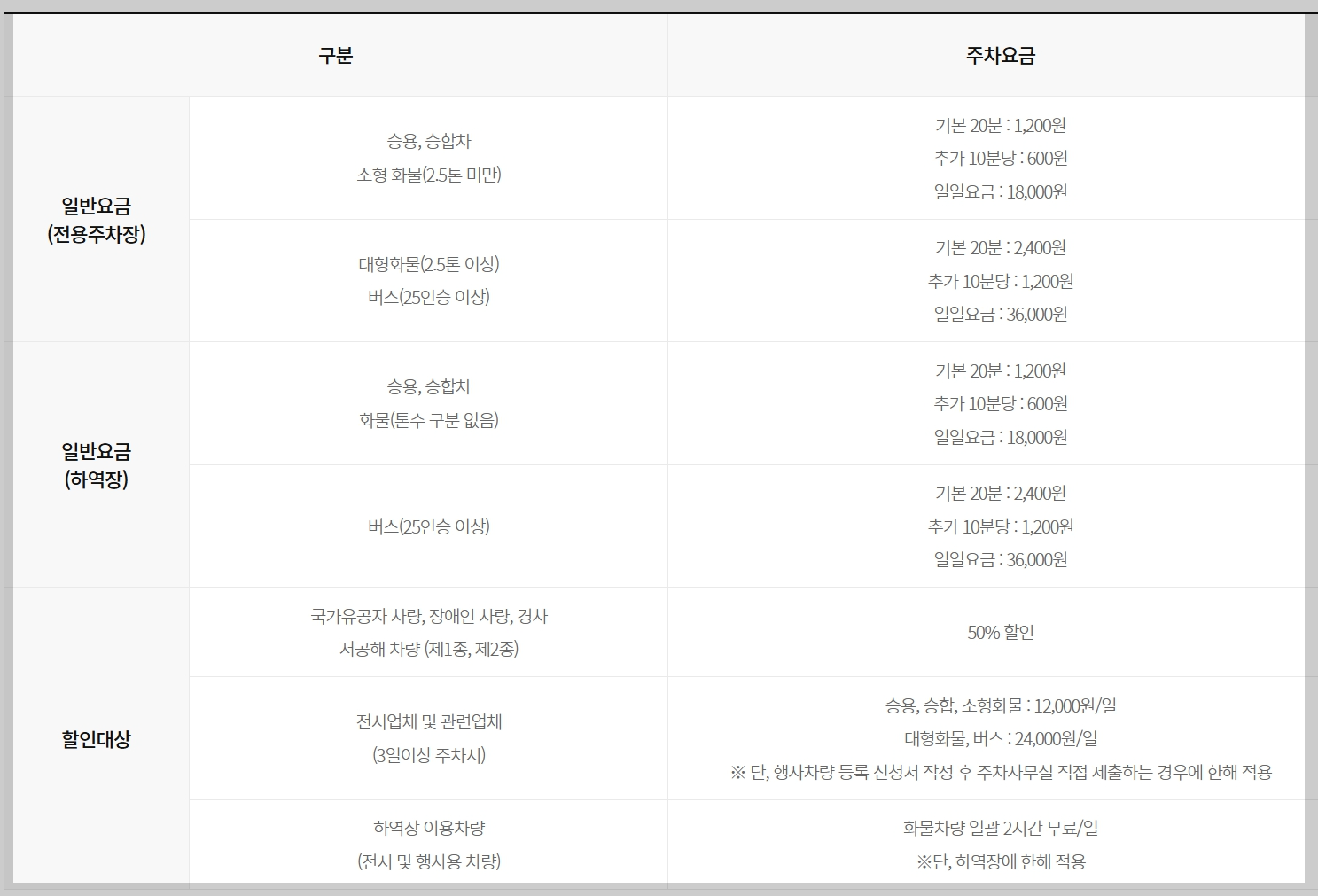 킨텍스 주차요금은 아래 표를 참고해주세요