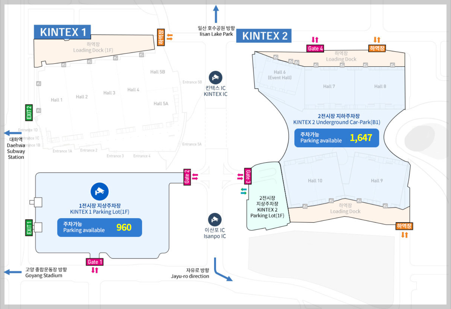 킨텍스 공식홈페이지에 방문하면 현재 주차가능대수를 확인할 수 있습니다.