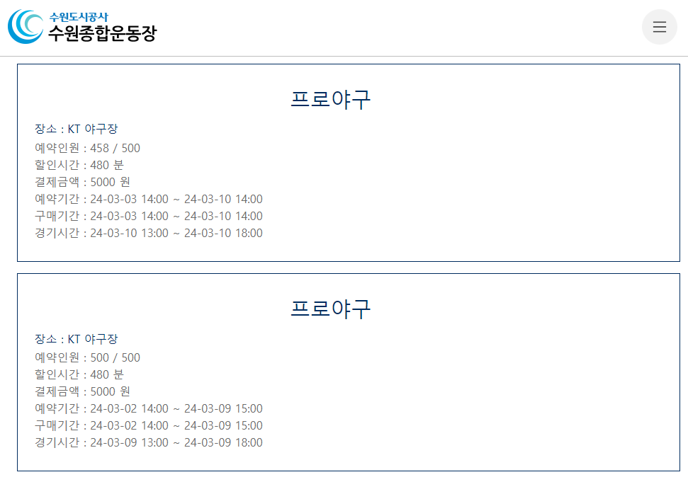 수원종합운동장 사전예약 사이트에 들어가서 본 결과 3월 9일은 예약인원이 마감됐고 10일은 42대 정도 남은 것으로 확인됩니다.