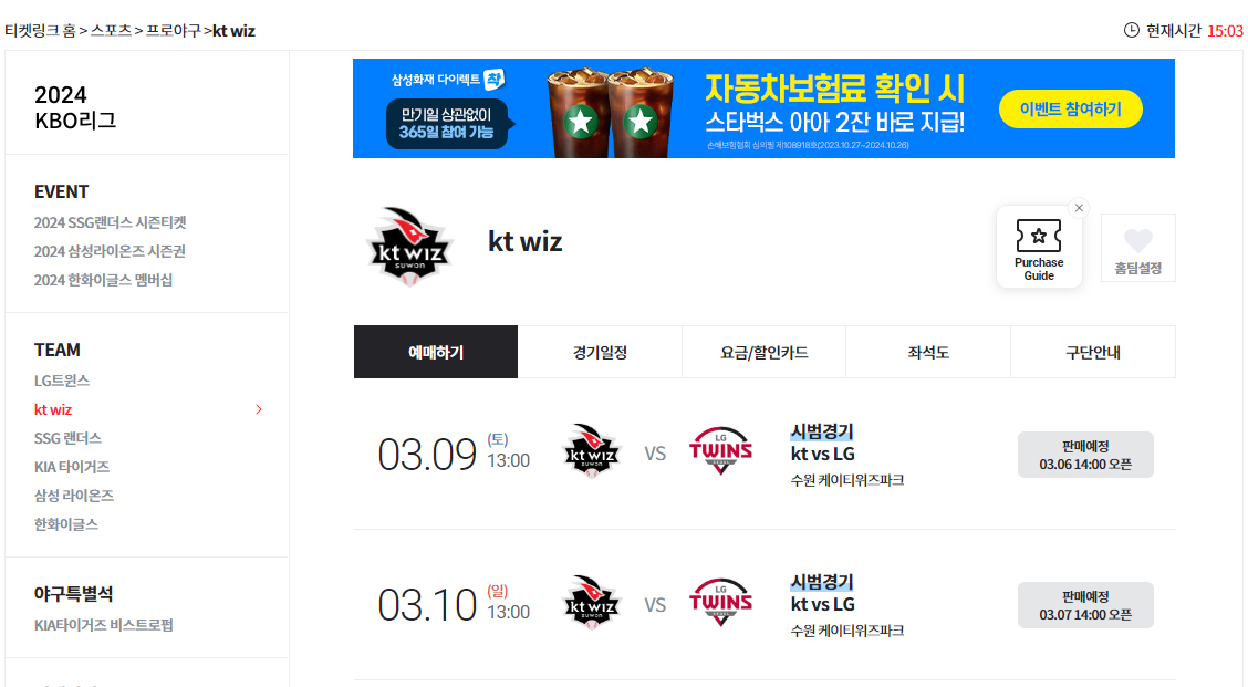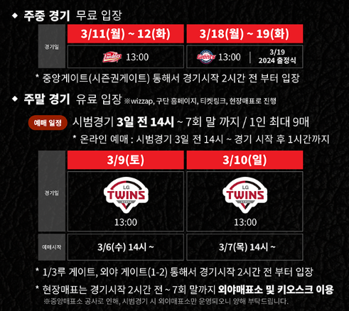 KT 위즈 LG 트윈스 시범경기 예매 방법